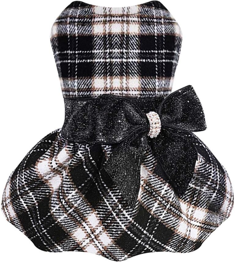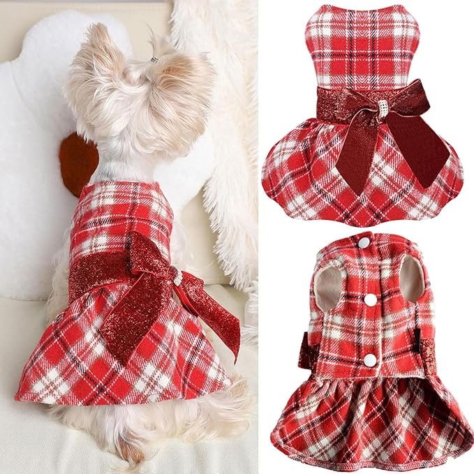 Dog Dress for Small Dog, Yorkie Sweater Girl Plaid Puppy Clothes Chihuahua Cat Cute Warm Fleece Apparel