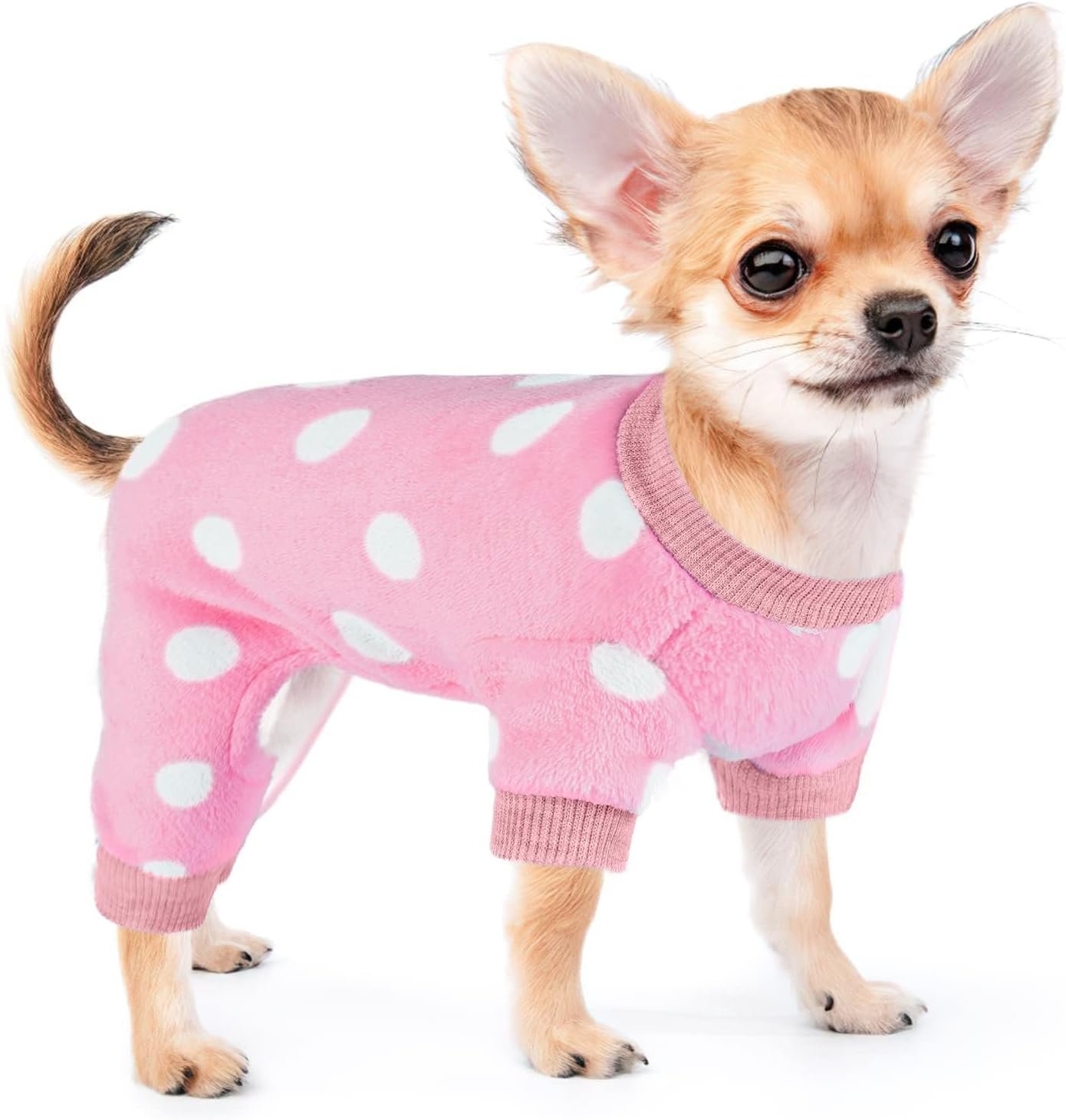 DaFuEn Dog Sweater, Dog Pajamas for Small Dogs, Winter Pet Onesies Pjs,Puppy 4 Legged Sweater Clothes for Chihuahua Yorkie Teacup Jumpsuit,Cute Pet Outfits Apparel (X-Small,Pink Polka Dot)