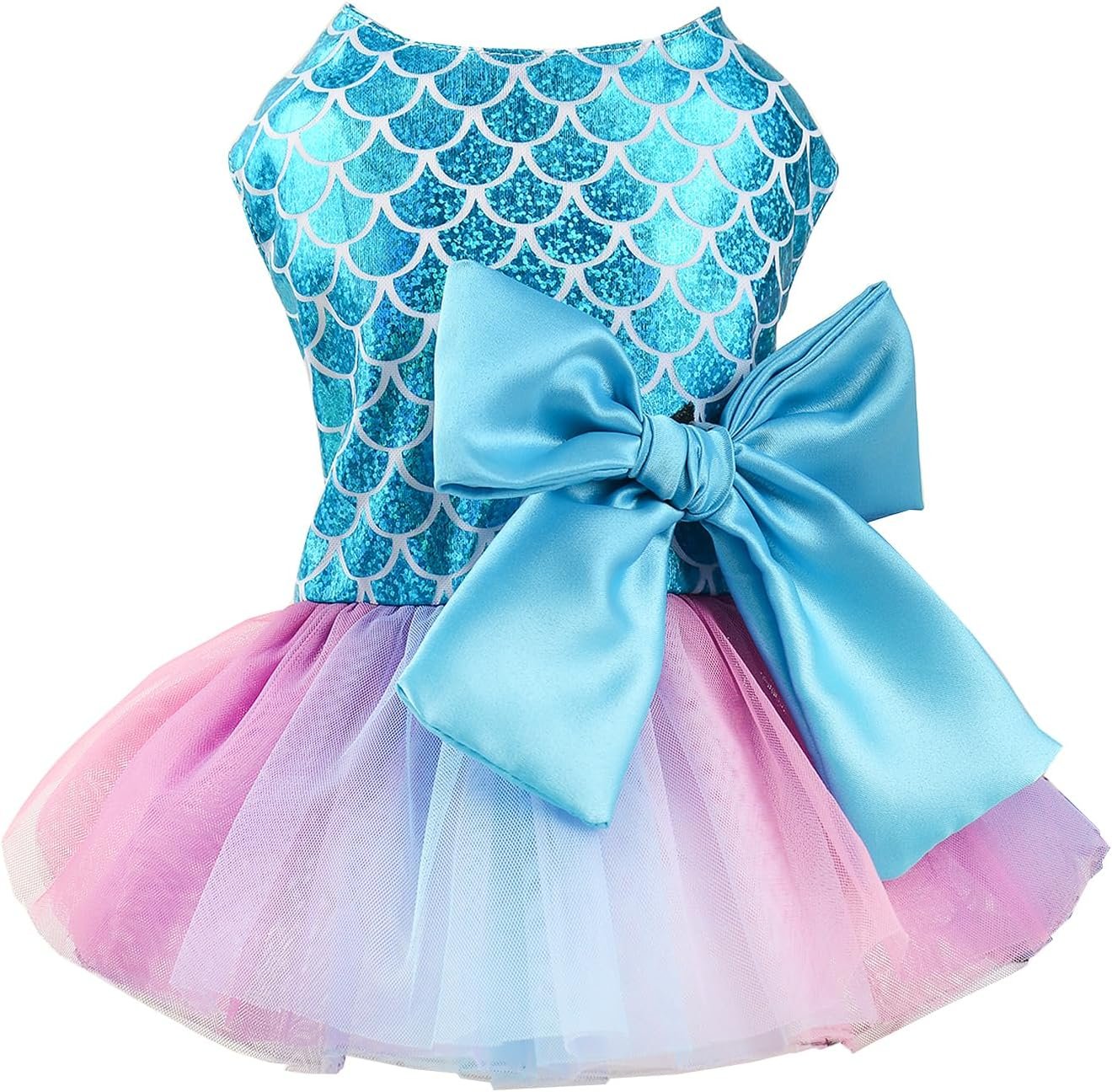 Dog Dress Dog Dresses for Small Dogs Girl Mesh Puppy Dress Summer Dog Clothes Yorkie Chihuahua Teacup Outfits Clothing Apparel Pet Cat Princess Dress Dog Birthday Outfit, Mermaids, Small
