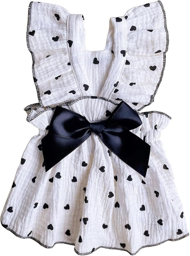 / QWINEE Heart Print Dog Cat Dress Bow Decor Cute Dog Dresses Puppy Tutu Skirt Chihuahua Teddy Pomeranian Dress Birthday Holiday Clothes for Cat Kittens Small Medium Large Dogs Black