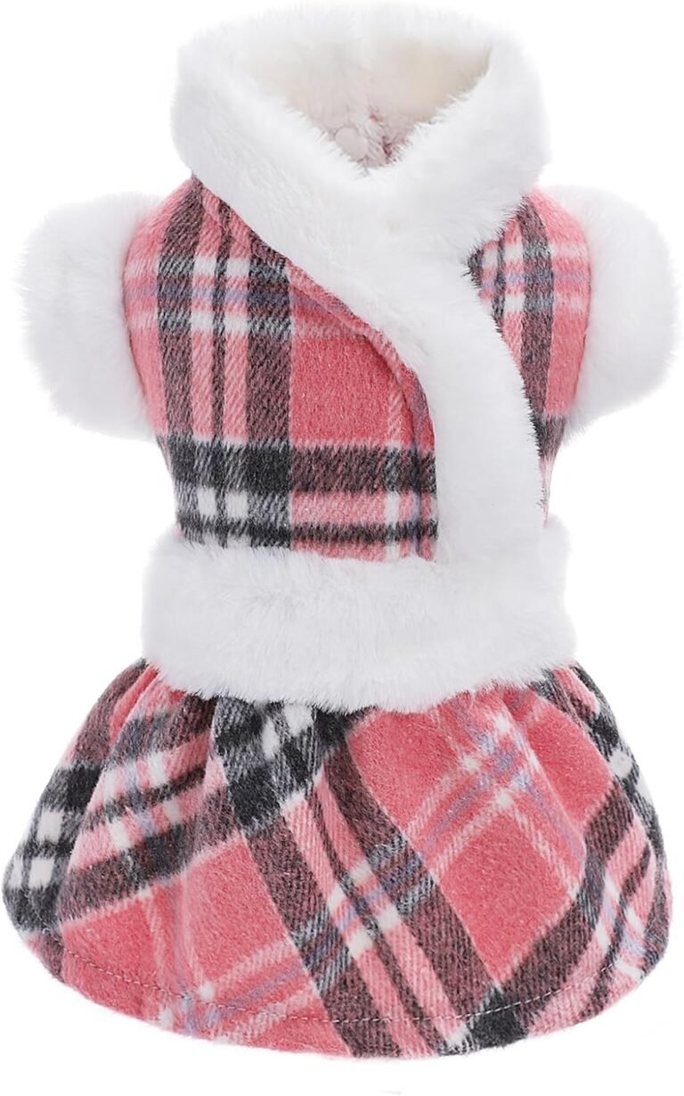 Dog Sweaters for Small Dogs Girl Dog Dress Sweater Winter Puppy Clothes Cold Weather Dog Coat Fleece Warm Pet Outfit Skirt for Chihuahua Yorkie Teacup Plaid Cat Apparel (X-Small, Pink)