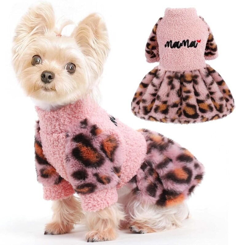 Dog Sweater Dress, XX-Small, Pink Leopard – Warm Winter Dog Clothes for Small Breeds