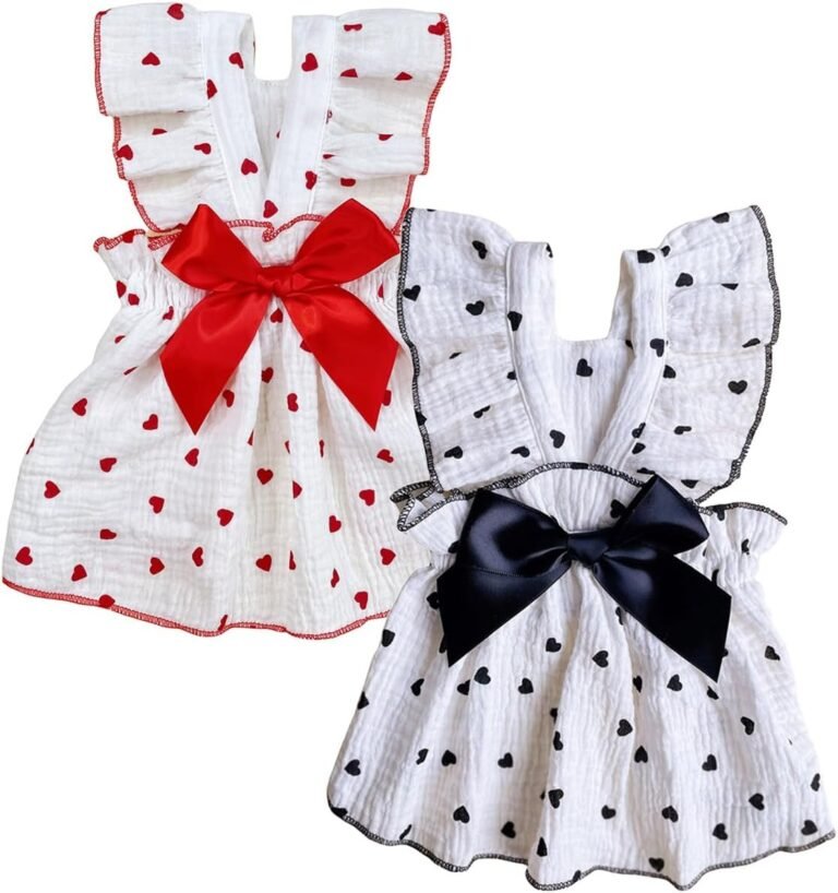 QWINEE 2pc Heart Print Dog Cat Dress Bow Decor Cute Dog Dresses Puppy Tutu Skirt Chihuahua Teddy Pomeranian Dress Birthday Holiday Clothes for Cat Kittens Small Medium Large Dogs Black and White XS